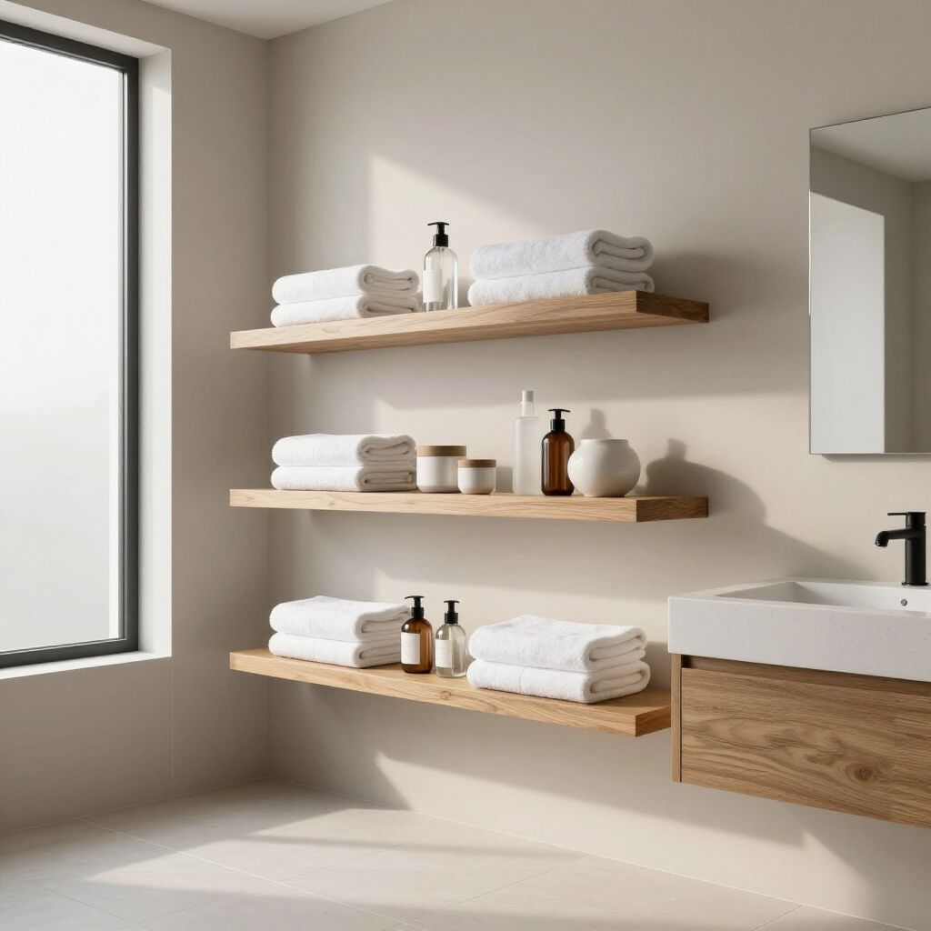 Durable, moisture-resistant shelves tailored for bathroom use, combining practicality with elegant design.